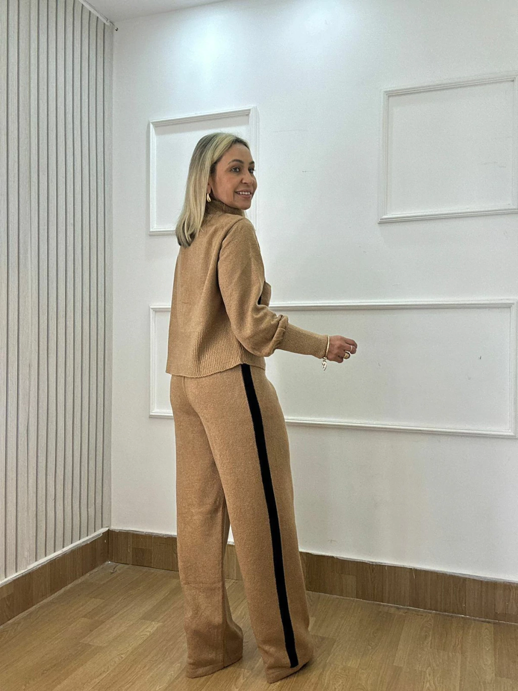O Conjunto Mary é a união perfeita entre elegância e praticidade para o dia a dia. Confeccionado em tricot Muse, ele oferece um caimento impecável e confortável, com elasticidade que veste super bem do 36 ao 44.