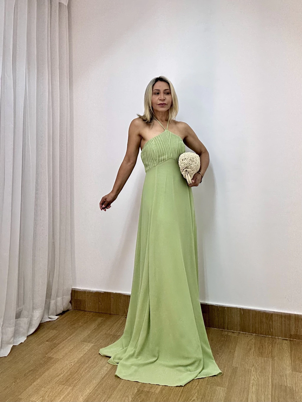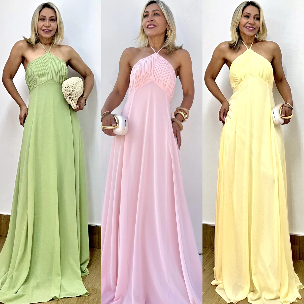 Conheça o Vestido Ivo em crepe chiffon, uma peça sofisticada com detalhes delicados em nervurinha na parte do busto que garantem um toque único ao visual. Com fechamento em zipper nas costas e amarração elegante no pescoço, o vestido é totalmente forrado para maior conforto e qualidade. Disponível nos tamanhos P (38/40) e M (42), é perfeito para quem valoriza estilo e praticidade.