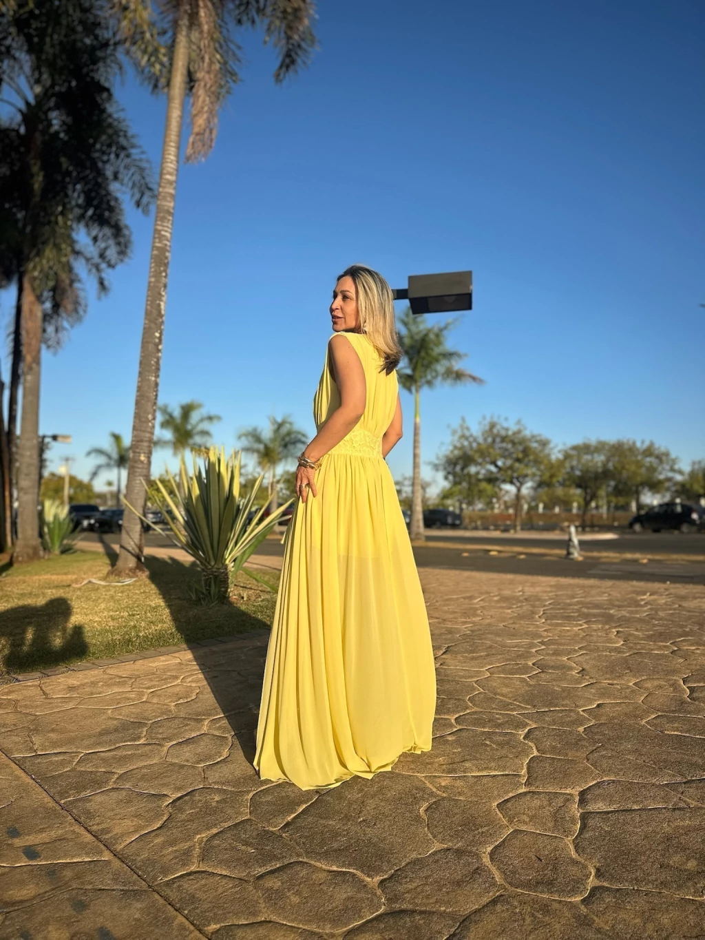 O Vestido Longo LAYLA é a escolha perfeita para ocasiões especiais que pedem elegância e sofisticação. Confeccionado em crepe chiffon, apresenta detalhes delicados em renda chantilly na cintura, que valorizam a silhueta com um toque romântico.