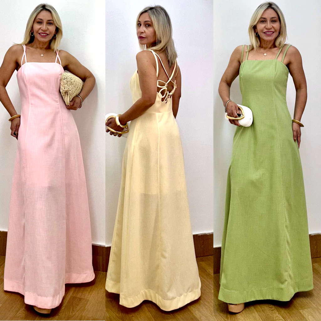 Descubra o Vestido Mona em linho, uma peça que une conforto e estilo com detalhes exclusivos nas costas. Seu design longuete valoriza a silhueta, enquanto o fechamento em zipper garante praticidade. O vestido é forrado e conta com alças finas, ideal para os dias mais quentes.